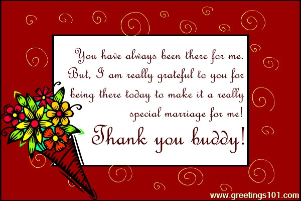 You have always been there for me. But, I am really grateful to you for being there today to make it a really special marriage for me! Thank you buddy!
